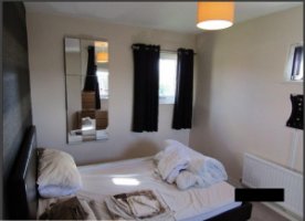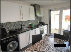 The house comprises to the ground floor; an entrance hall with storage cupboard, a study/office room ideal for home worker, a kitchen fitted with white high gloss units supplied with dining table and chairs, washing machine, fridge/freezer, gas hob & electric oven, double doors to rear garden. The sitting room is provided with sofas and large flat screen TV and also has doors leading on to a paved patio and lawned rear garden. Two good sized double bedrooms available on first floor supplied with bedroom furniture. You can take a look at both and choose which you'd prefer. Note that the photos don't really do the rooms justice, they are quite spacious. I currently occupy one but won't mind moving into the other if you want it. The bathroom has a contemporary suite including `P` bath and shower. There's off road parking for car in enclosed carport which we can share.