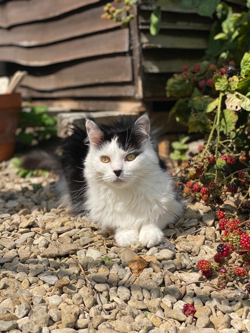 I live here with my rescue cat Winnie. She's timid but affectionate and once she gets to know you she will come and keep you company, especially if you let her sit on your lap.