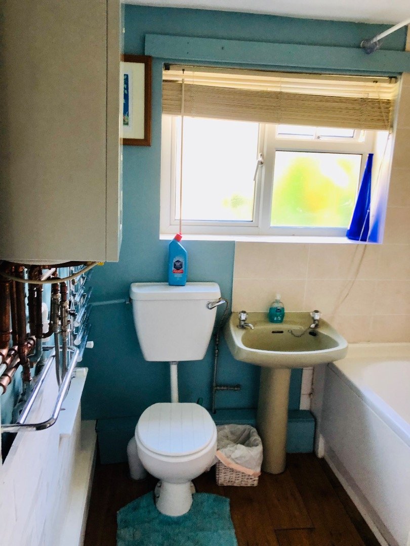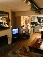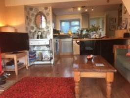 Double furnished en -suite room. Large corner bath and shower. Heated towel rail. TV, and storage. Open plan lounge/kitchen. Log burner. Washing machine. Garden. Parking. In Cosy High Street Cottage close to all amenities and public transport network.